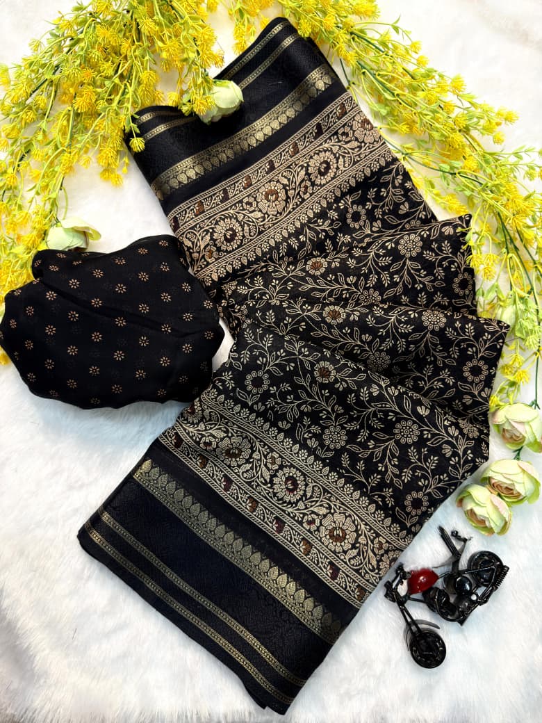 It comes with a matching blouse as shown in the picture, completing the look with coordinated elegance πŸ‘—πŸ’–. A must-have piece for those who love classic designs with a modern finish.